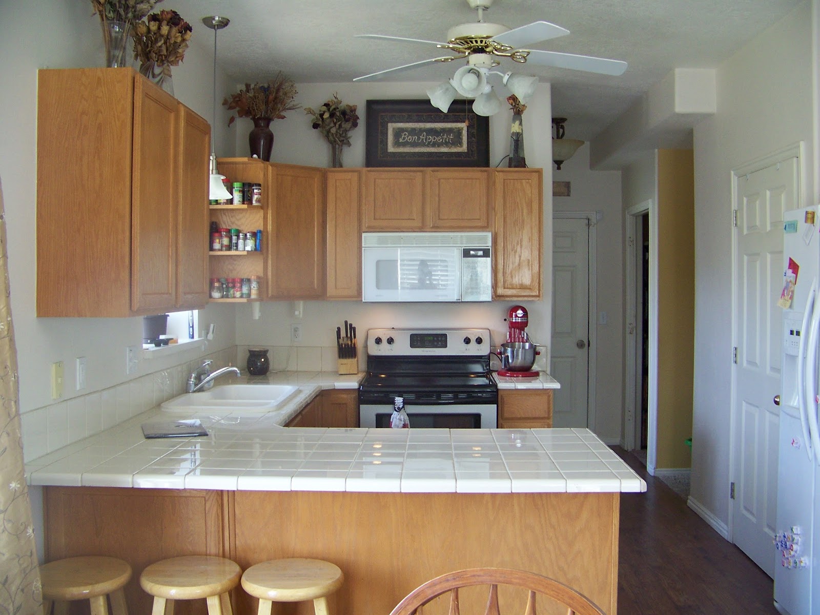Yes, I know that all my photos have laundry baskets in the kitchen - another pet peeve with my house. The laundry room is right by the kitchen, and not very big. All the bedrooms are upstairs and we usually end up with laundry baskets sitting right by the kitchen - one day I will come up with a project to fix that.... but for now an updated kitchen will do!