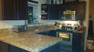 I was already liking it better but those countertops really had to go. They had always been my least favorite part of my house. So I convinced my husband that Granite Countertops were a necessity.